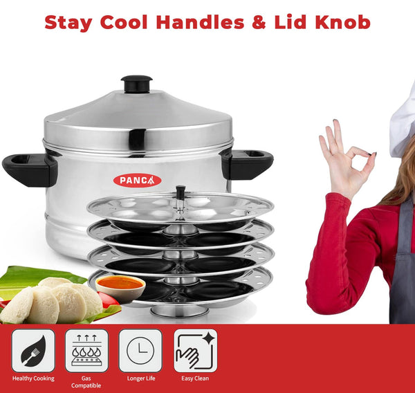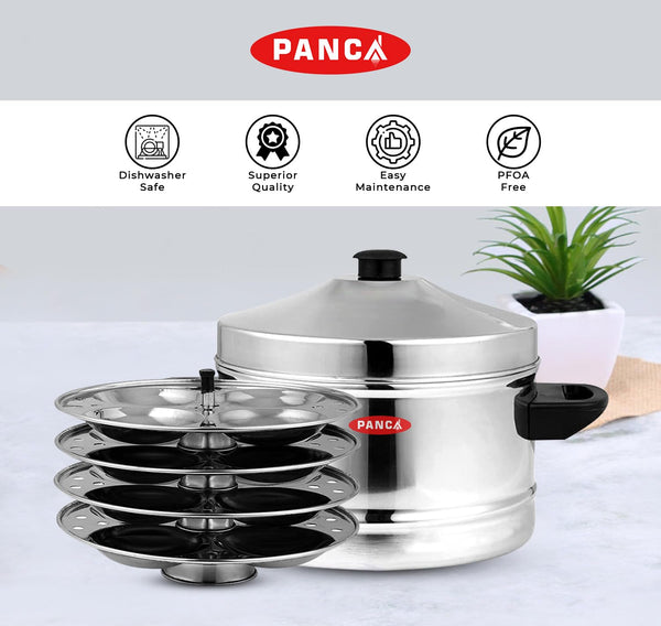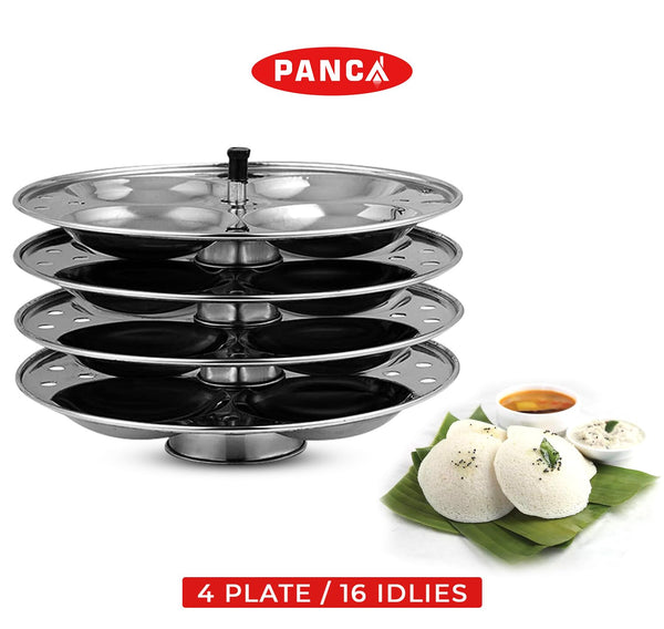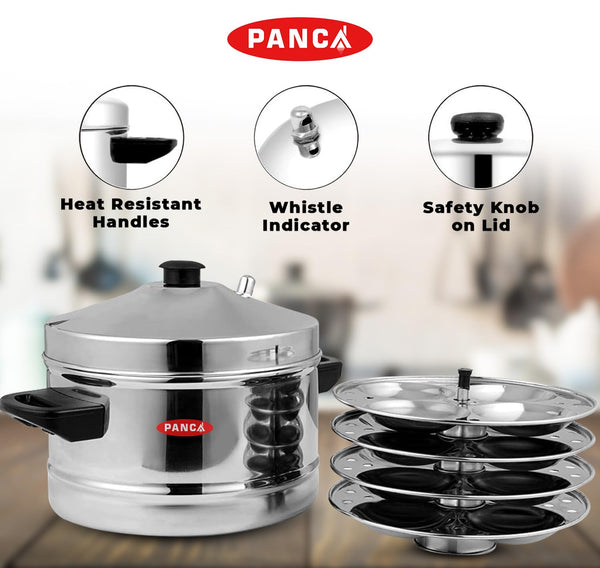 PANCA Stainless Steel Idli Cooker, 4 Plates Idli Maker With Whistle (16 Idli, Pack of 1)