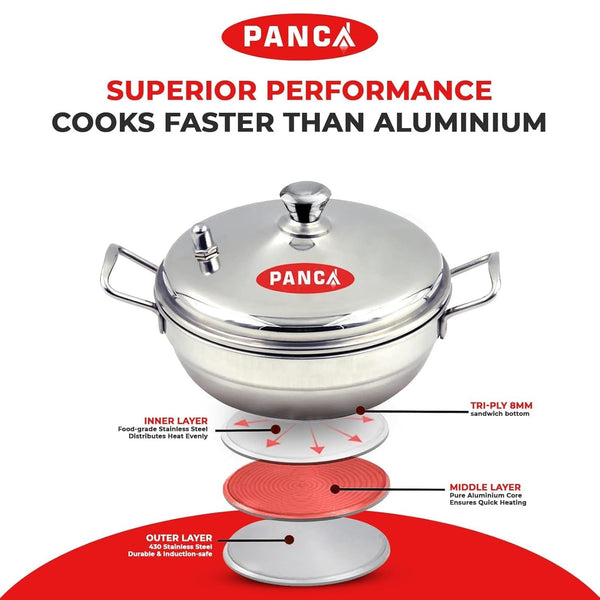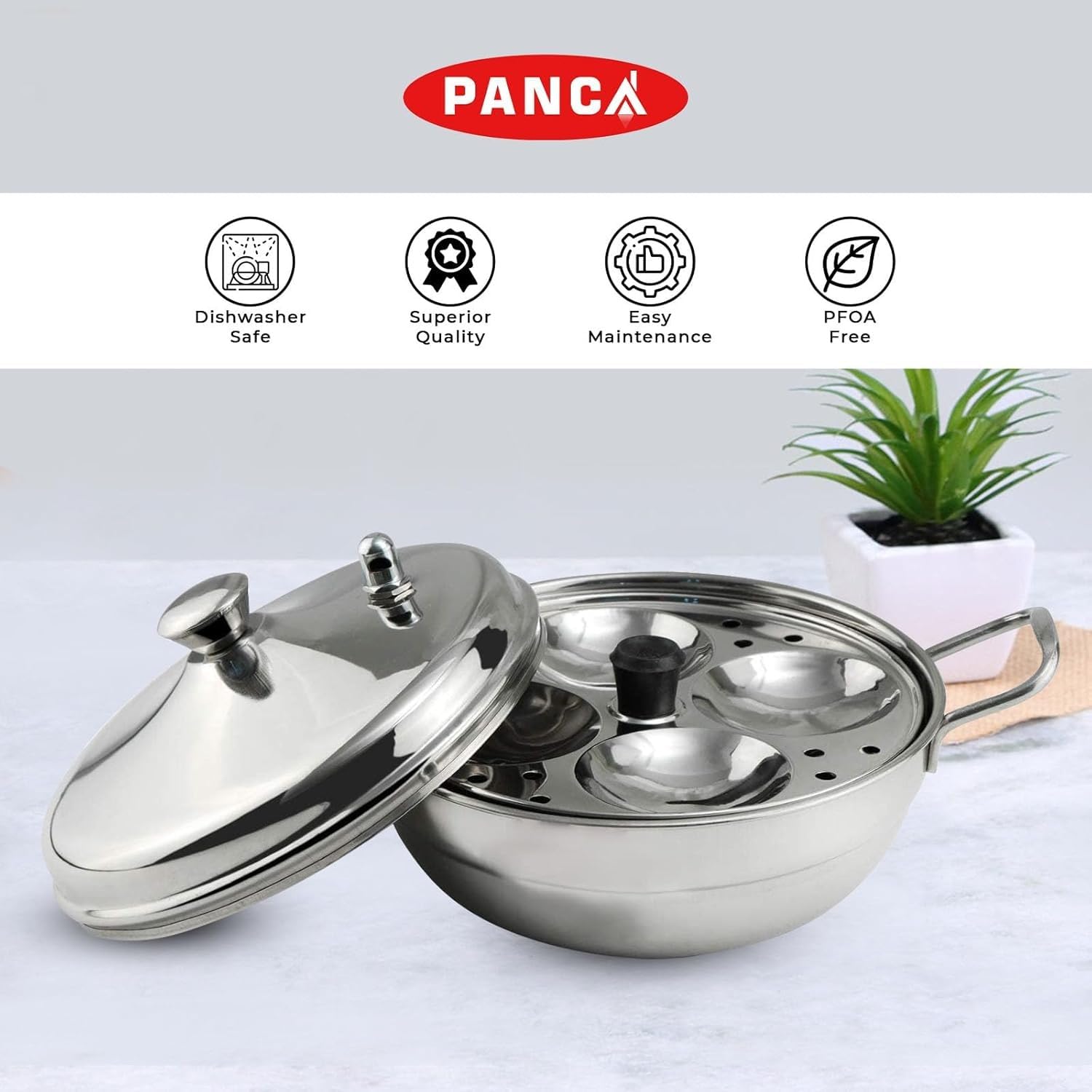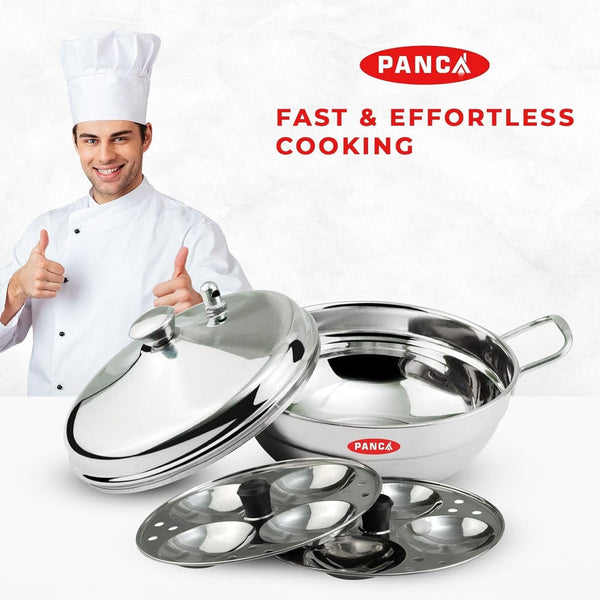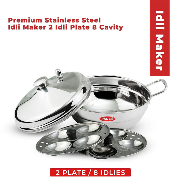 PANCA Stainless Steel Multi Purpose Kadai with Steel Lid, Idli Maker 2 Idli Plate 8 Cavity Idli Cooker Stainless Steel Idly Pot with Steamer