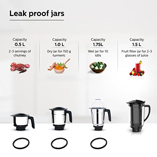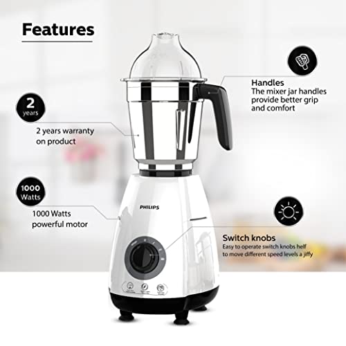 Philips HL7703/00 1000 Watt Mixer Grinder Copper Motor, 4 Jar with 5 Year Warranty on Motor