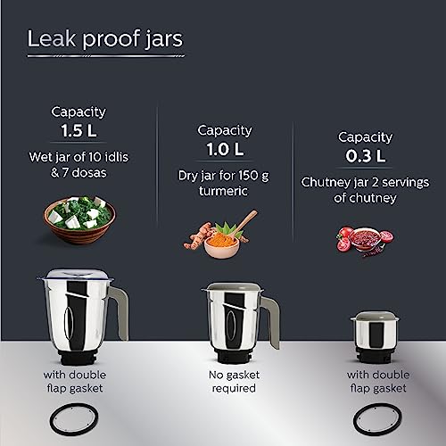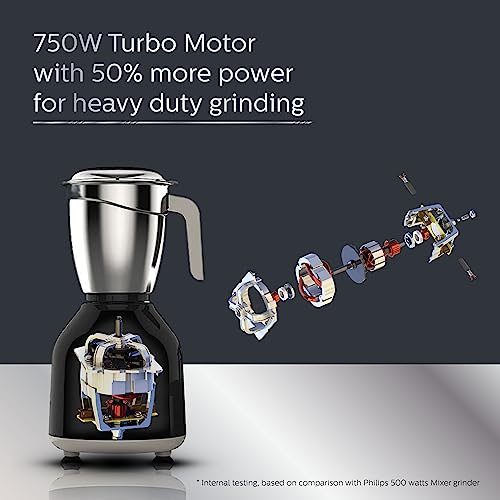 Philips HL7756/01 Mixer Grinder 750 Watt, 3 Stainless Steel Multipurpose Jars with 3 Speed Control and Pulse function (Black)