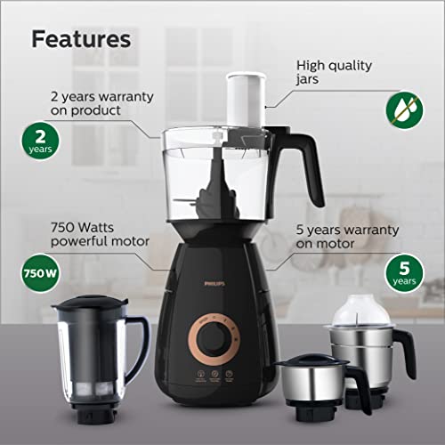 PHILIPS Mixer Grinder 3-in-1 750 Watt (Mixer Grinder + Juicer + Food Processor) 4 Jar, (HL7707/00)