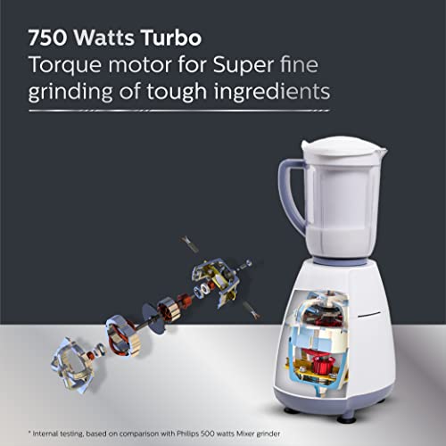 Philips Viva Collection HL7701/00 Mixer Grinder, 750 Watts, 4 Jars (Elegant Lavender and White)