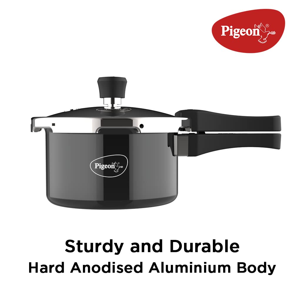 Pigeon Aluminium Hard Anodised Pressure Cooker Outer Lid with Induction Base (Black, 2 L)