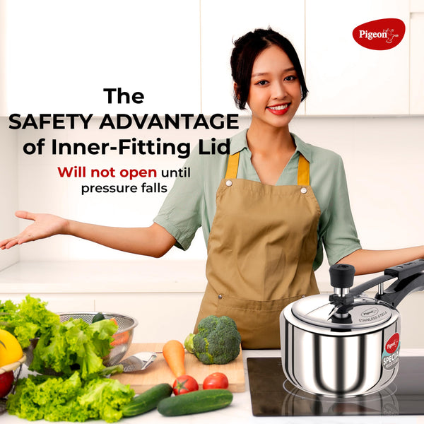 Pigeon by Stovekraft 2 Litre Special Stainless Steel Inner Lid Induction Base Pressure Cooker (Silver) BIS Certified