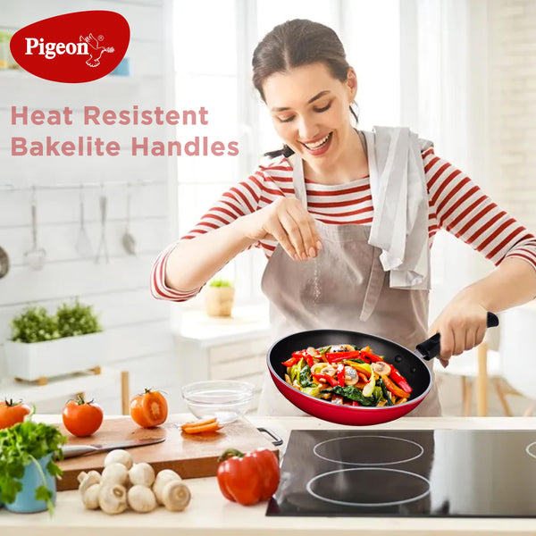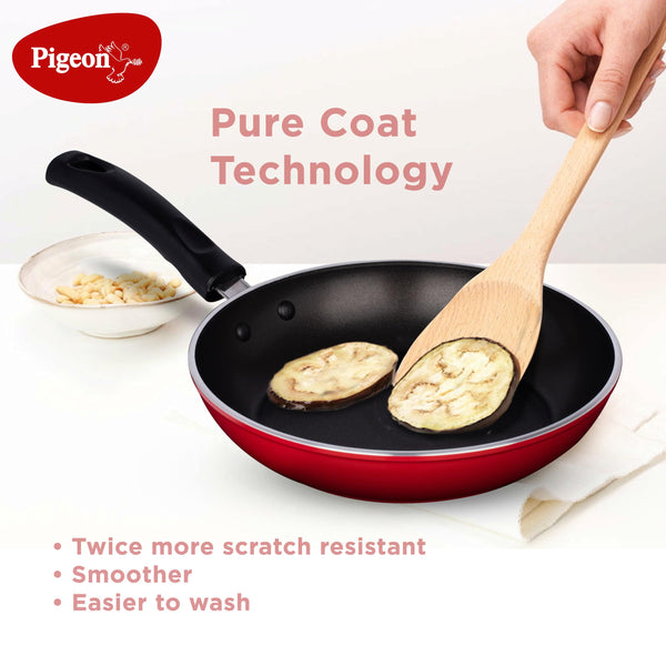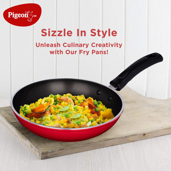 Pigeon by Stovekraft Basics Aluminium Non Stick, Non Induction Base Frypan, 220 mm, Red