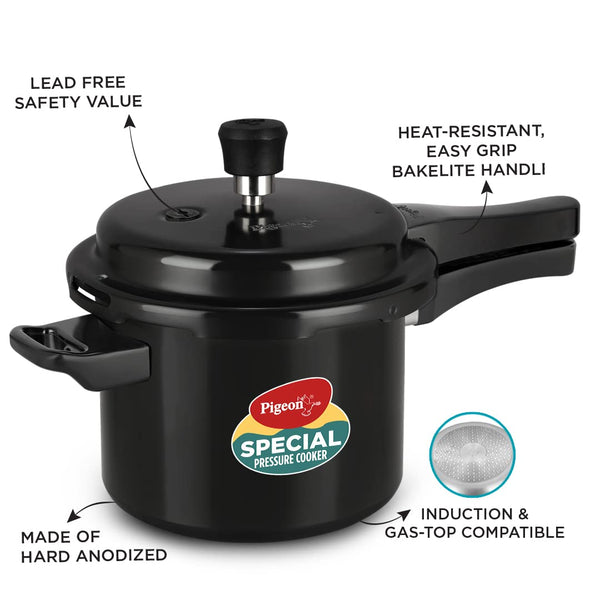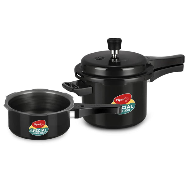 Pigeon by Stovekraft Hard Anodised Aluminium Pressure Cooker Combo - 2 L, 3 L and 5 L Induction Base Outer Lid Cooker (14414, Black)
