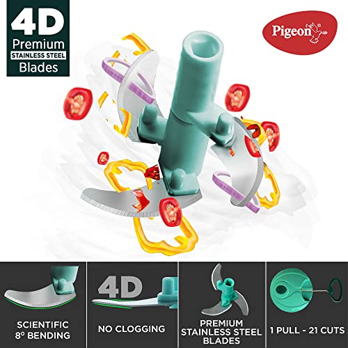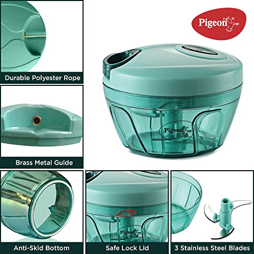 Pigeon by Stovekraft High Grade Handy Chopper with 3 Blades for Effortlessly Chopping Vegetables and Fruits for Your Kitchen (Green, 400 ml, 12420)