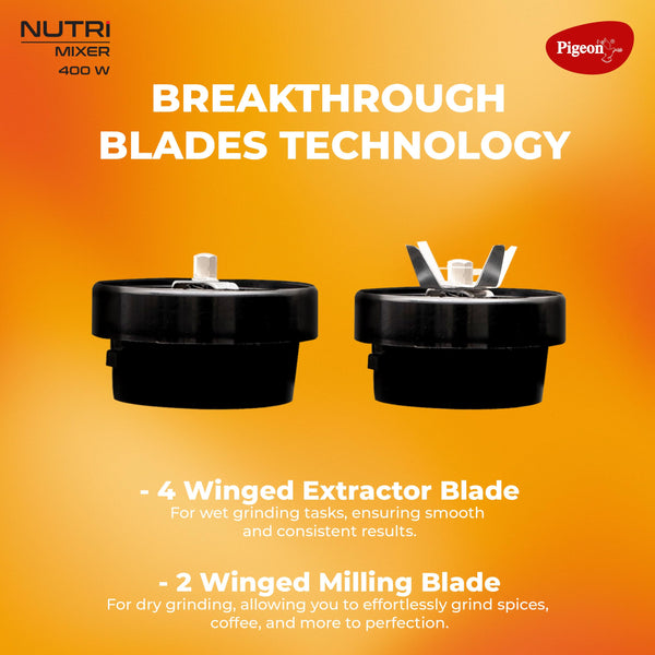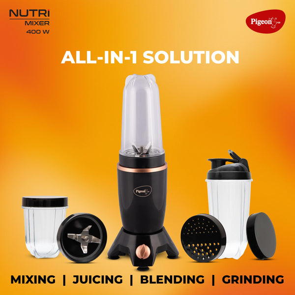 Pigeon By Stovekraft Nutri Mixer | Grinder Juicer Blender Smoothie Maker All-in-1 Machine | 400 Watt | 3 Jars- Multiuse Jar 500ml, Dry Grind 300ml, 1 Sipper, 1 Cap, 1 Strainer |2 Blades|1Year Warranty