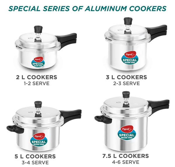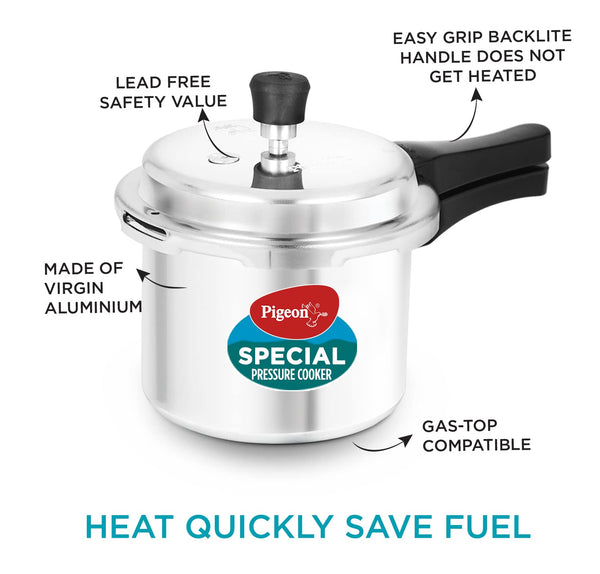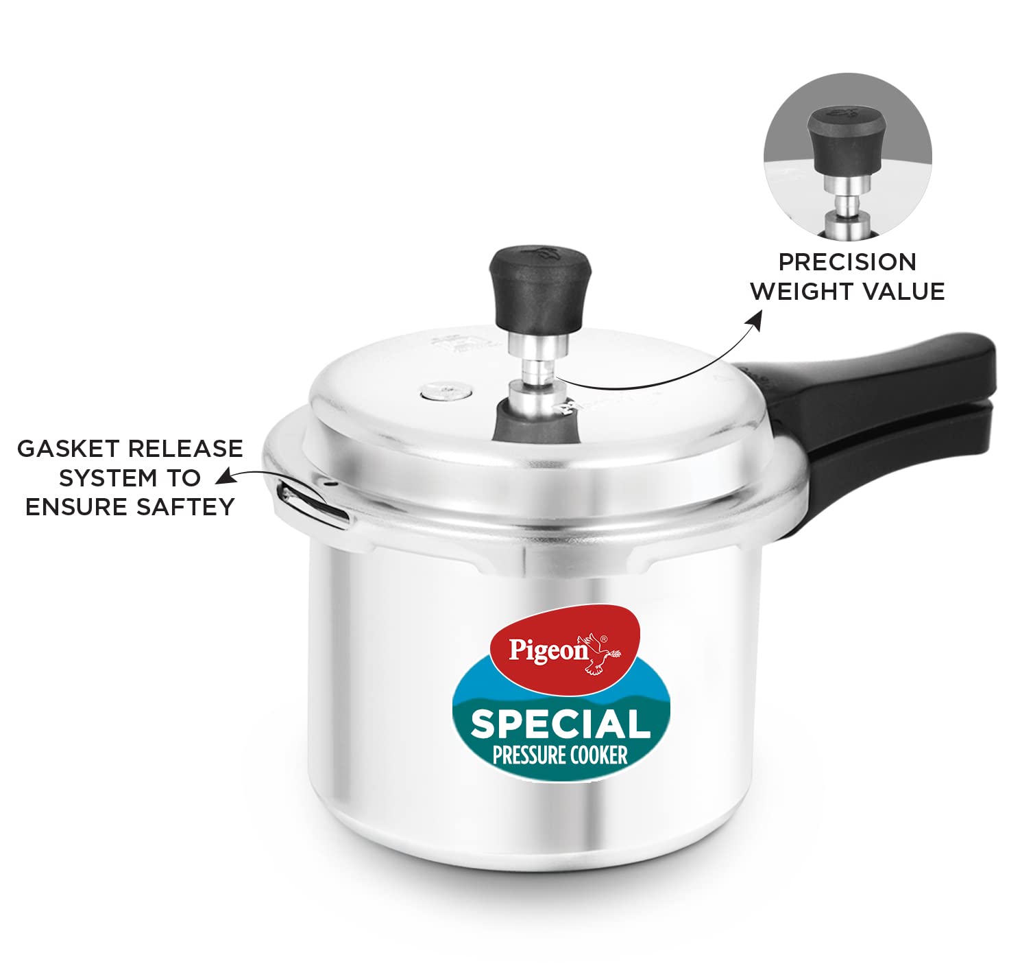 Pigeon By Stovekraft Special Aluminium Pressure Cooker Combo with Outer Lid Gas Stove Compatible 2, 3, 5 Litre Capacity for Healthy Cooking (Silver)