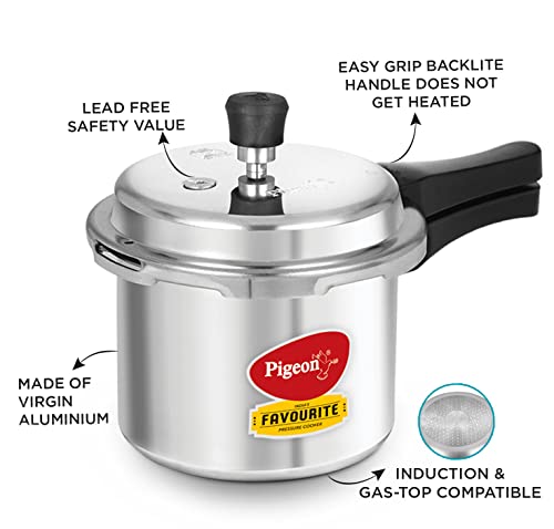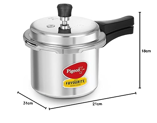 Pigeon By Stovekraft Special Aluminium Pressure Cooker with Outer Lid Induction and Gas Stove Compatible 3 Litre Capacity for Healthy Cooking (Silver)