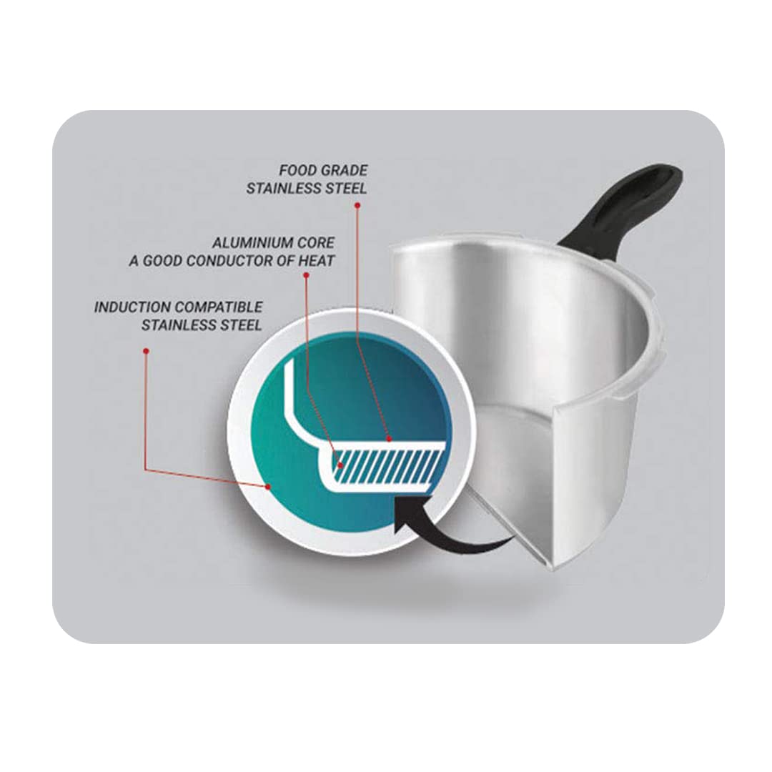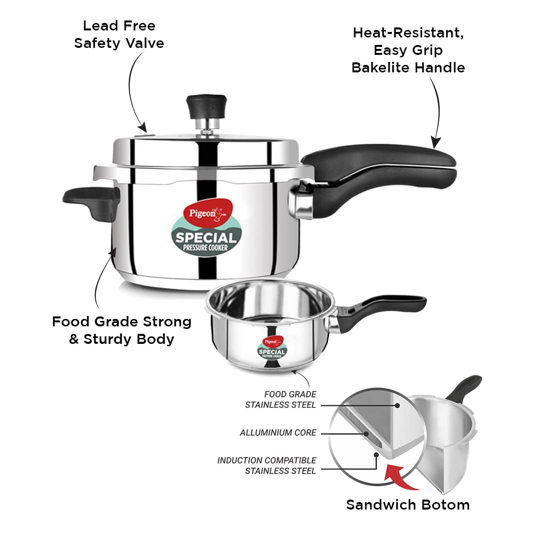 Pigeon By Stovekraft Special Stainless Steel Pressure Cooker with Outer Lid Induction and Gas Stove Compatible 2, 3, 5 Litre Capacity for Healthy Cooking (Silver)