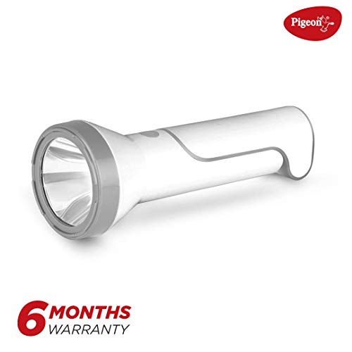 Pigeon Dhruv Shine 2 in 1 Desk and Torch Emergency Lamp with 1200 mAh and 8 Hours Backup (White, Pack of 1, Plastic)
