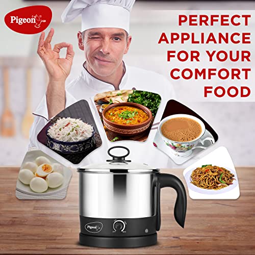 Pigeon Kessel Multipurpose Kettle (12173) 1.2 litres with Stainless Steel Body, used for boiling Water and milk, Tea, Coffee, Oats, Noodles, Soup etc. 600 Watt (Black & Silver)