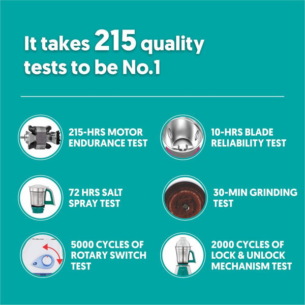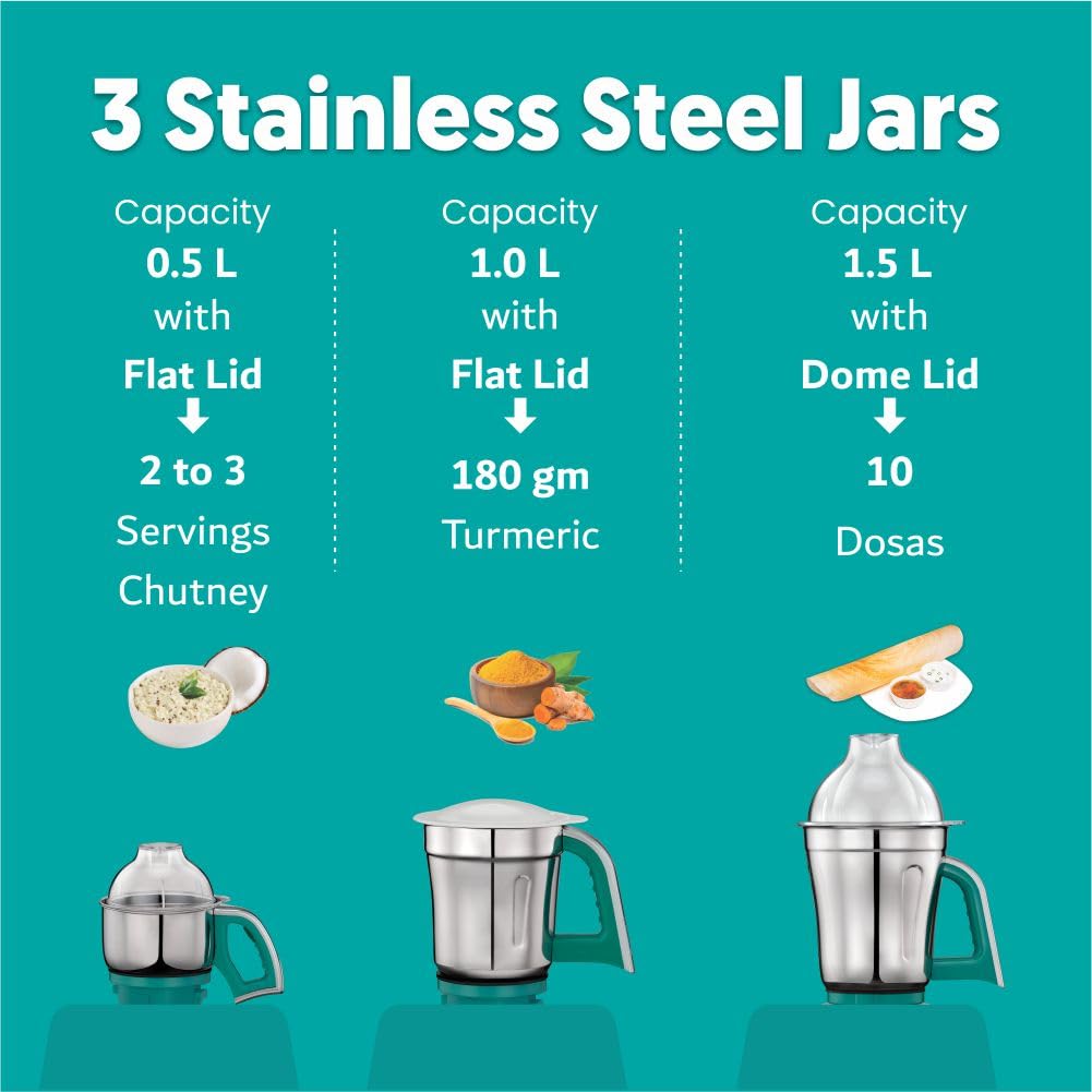 Preethi Aries Mixer Grinder for Kitchen | Vega W5 750 Watt Mixie,4 Jars | 5yr Motor Warranty & Lifelong Free Service | Green (MG 216)