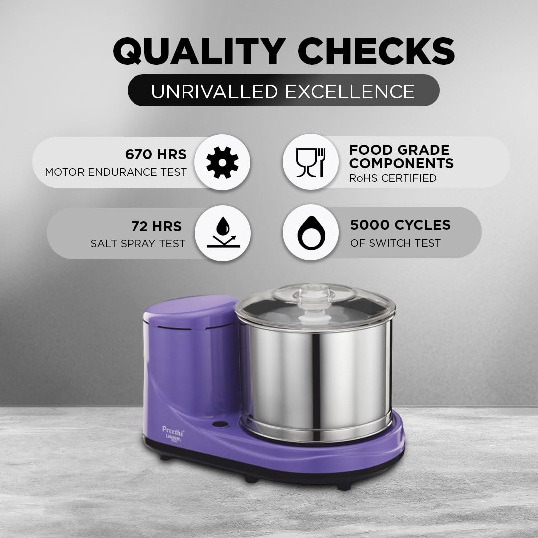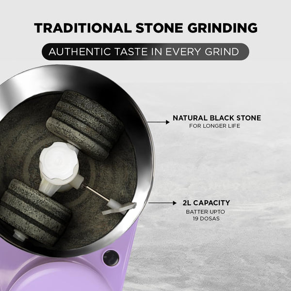 Preethi Wet Grinder|150W 2L Stainless Steel Table Top Wet Grinder|Ideal for Making South Indian Batter in Your Kitchen (Lavender)