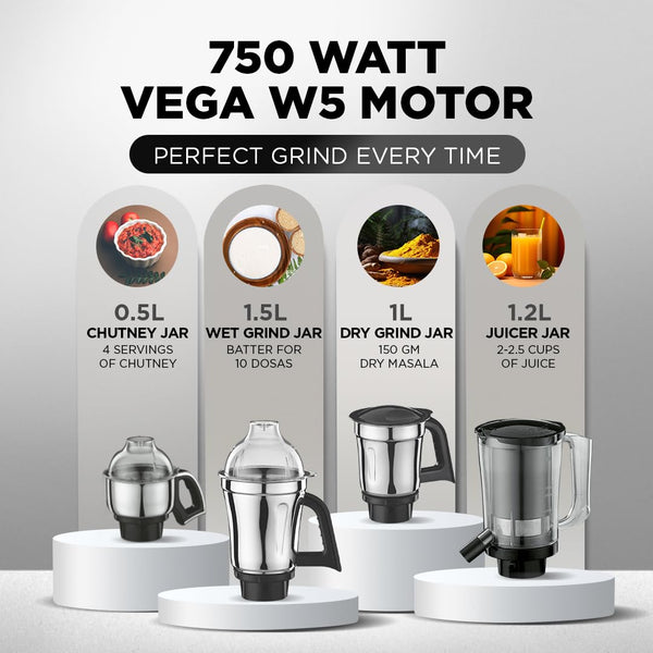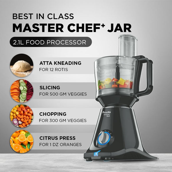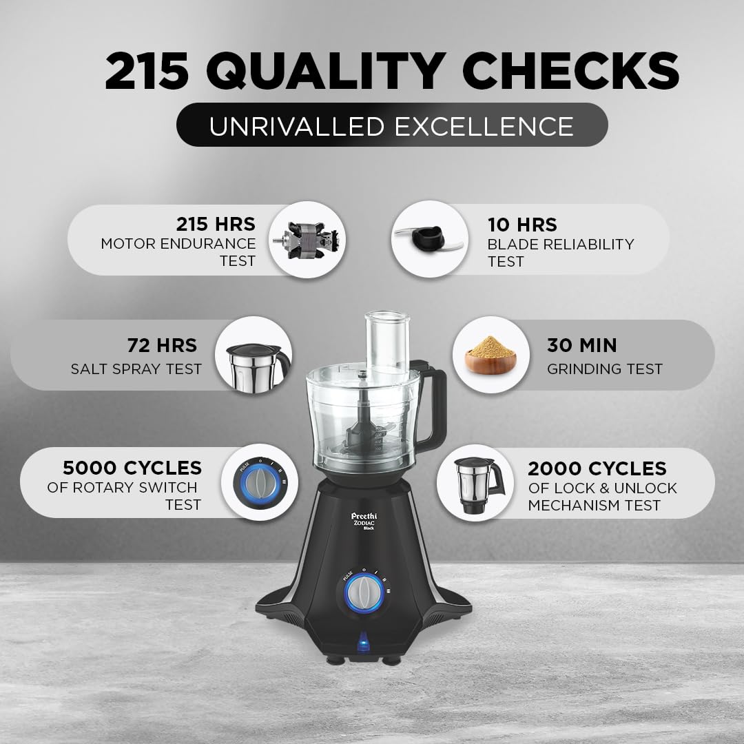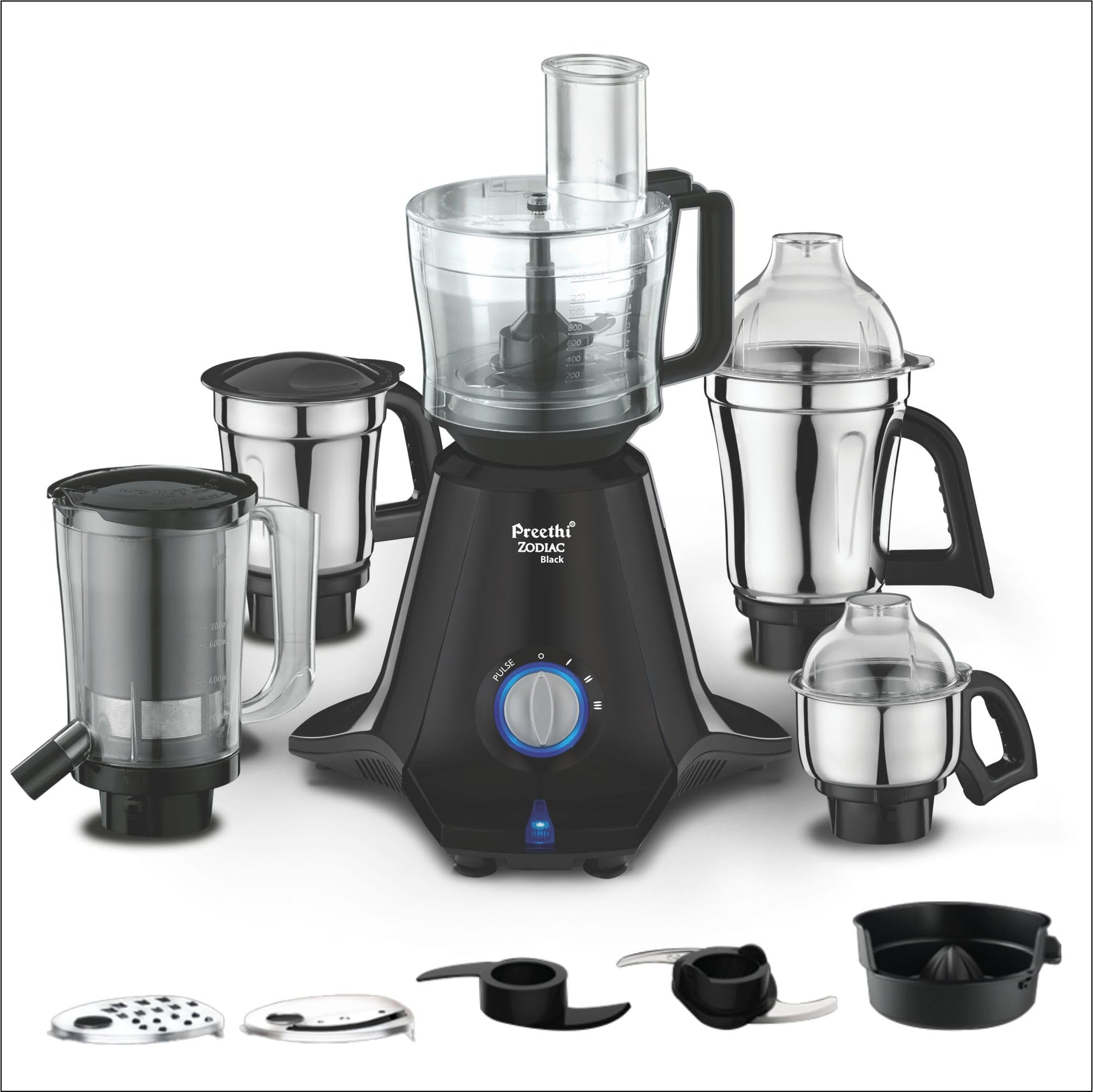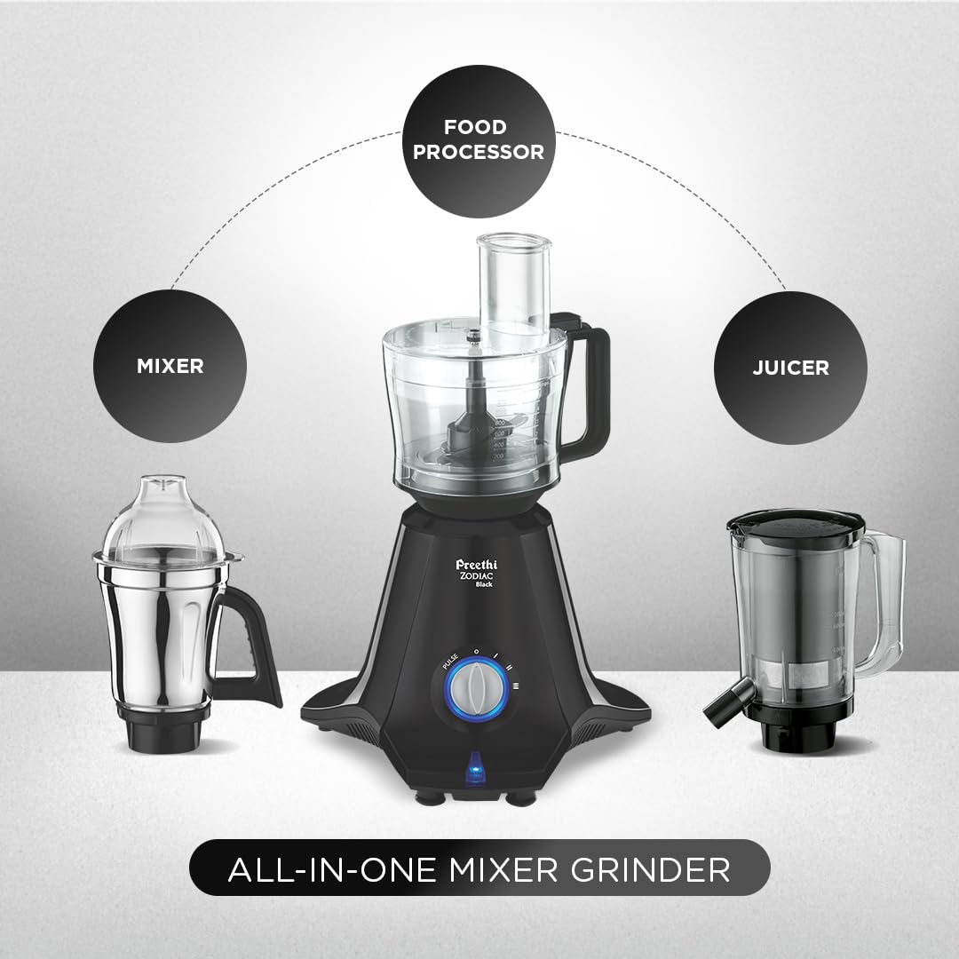 Preethi Zodiac Black Mixer Grinder for Kitchen, 5 Jars 750 Watt Mixie with Chutney Jar, Dry Grinding, Batter Grinding, Juicer & Masterchef Jar for chopping/grating (MG-261)
