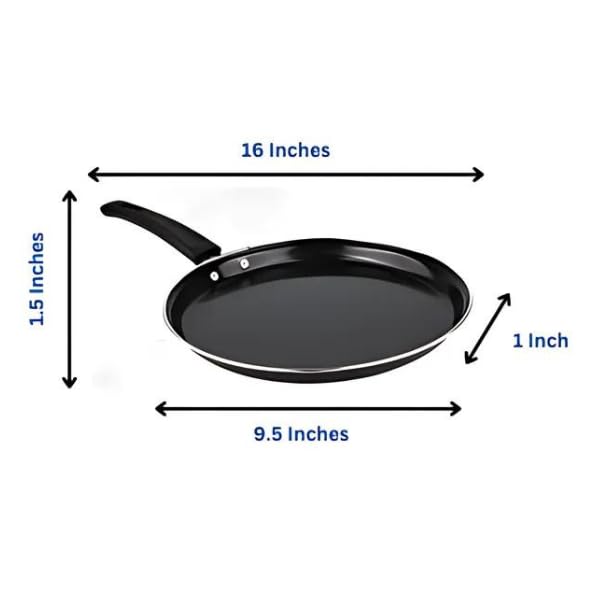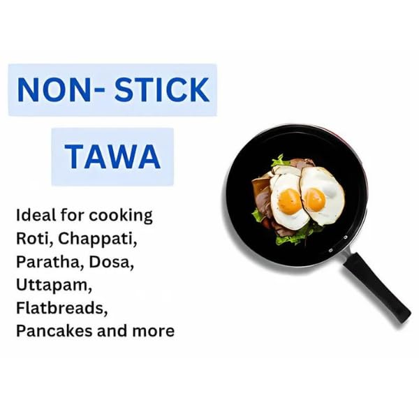 Premium 24cm Non-Stick Tawa for Perfect Roti, Dosa, Paratha & More | PFOA-Free, Heavy-Duty 2.9mm Thickness | Ultra-Durable, Easy-Clean Surface | Ideal for Home & Professional Kitchens | Black