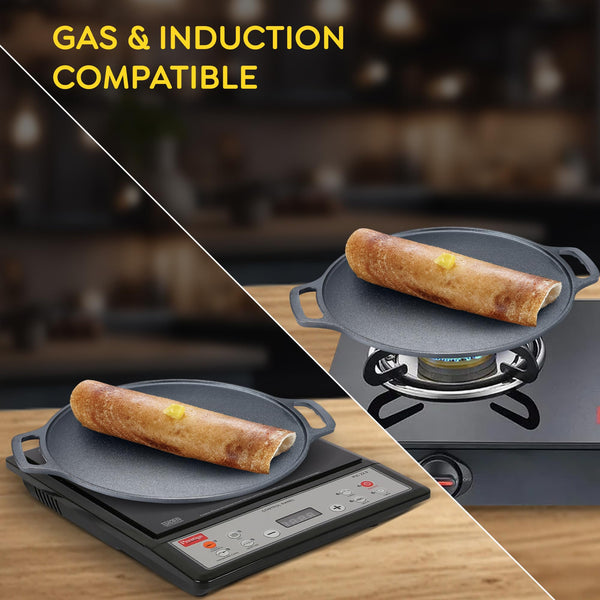 Prestige 30cm Dura Cast Iron Non-Stick Dosa Tawa| Heavy Gauge| Gas & Induction Compatible| Scratch Resistant| Even Heat Distribution