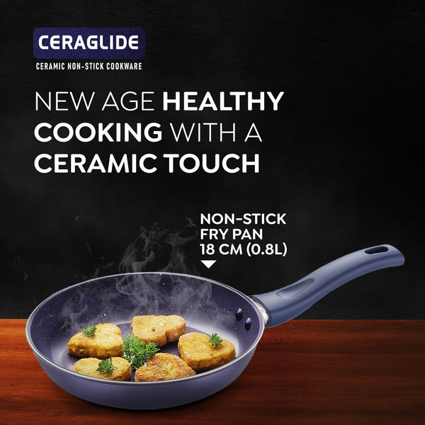 Prestige Ceraglide Ceramic Coated 18 cm Non-Stick Fry Pan | Consumes Less Oil | Preferred for High Heating & Even Heating | Stain-Resistant | Gas & Induction Compatible