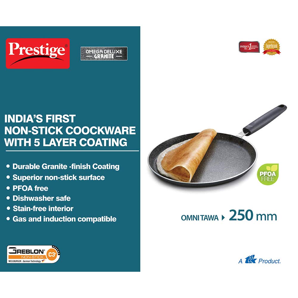 Prestige Hard Anodised Tadka Pan, 100 mm Omega Deluxe Granite Dosa Tawa, Black, 250 mm