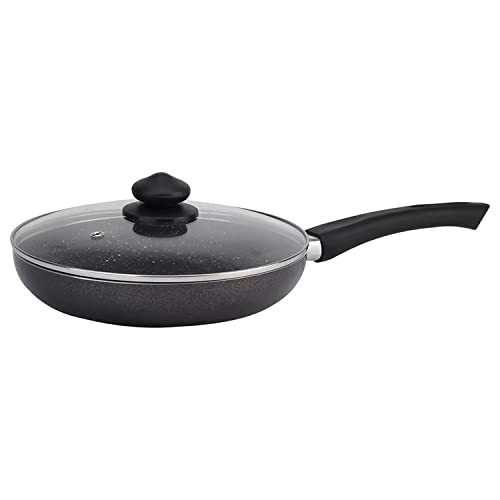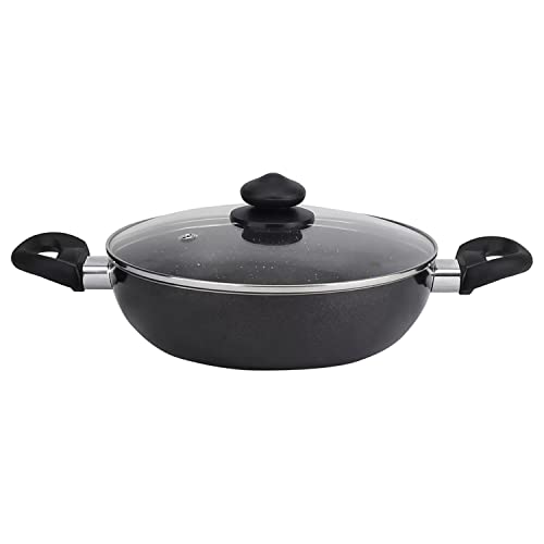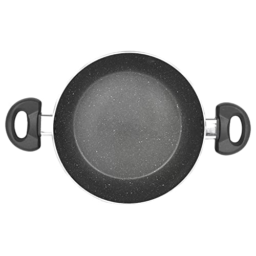 Prestige Omega Deluxe Granite Aluminium 3 Pcs Set- Tawa, Fry Pan & Kadai with 1 Glass Lid|Made Using German Technology|Non-Stick|Spatter-Coated Surface|Induction & Gas Compatible Base|Black