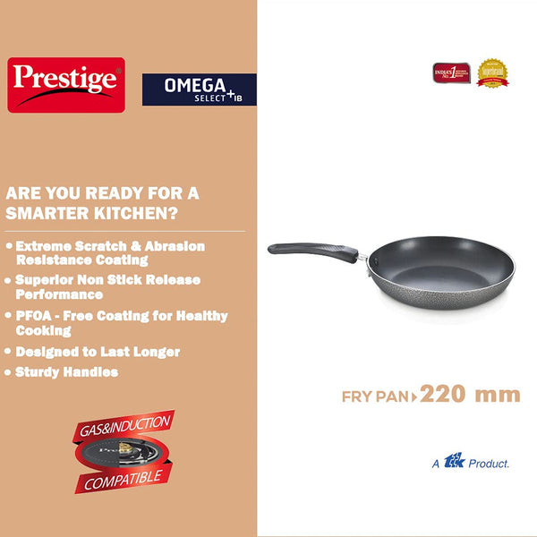 Prestige Omega Select Plus 20cm Non-Stick Fry Pan | Gas & Induction Compatible | Scratch Resistant & Metal Spoon Friendly | Sturdy Handles