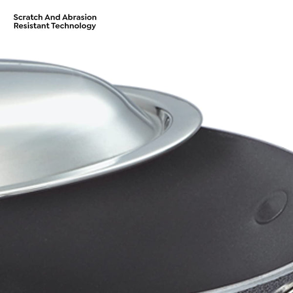 Prestige Omega Select Plus Aluminium Residue Free Non-Stick Appachetty with Lid, 20 cm, Black