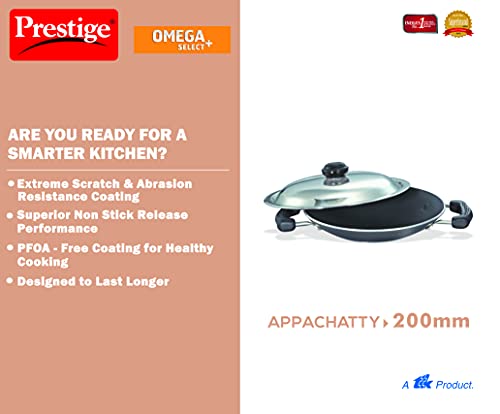 Prestige Omega Select Plus Non-Stick Deep Appachetty with Lid | Black | 20 cm | Residue Free | Scratch Resistant | Comfortable Grip | Spoon Friendly