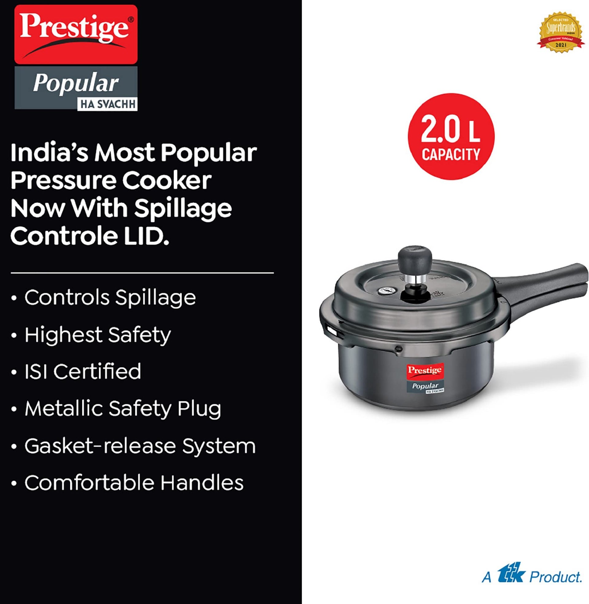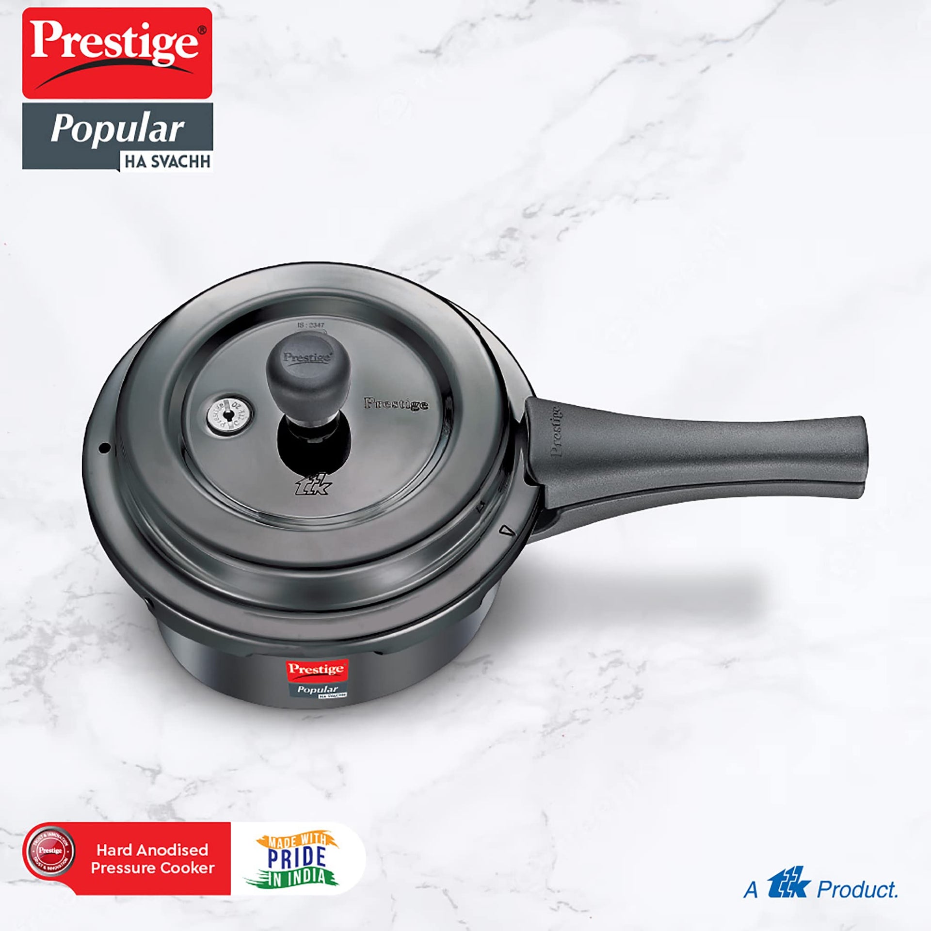 Prestige Popular Svachh Hard Anodised Pressure Cooker(2.0 L, Black, Deep Lid-Controls Spillage)