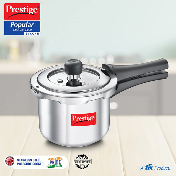Prestige Svachh Popular Spillage Control Stainless Steel Outer Lid Pressure Cooker,1.5 Liter(Silver)