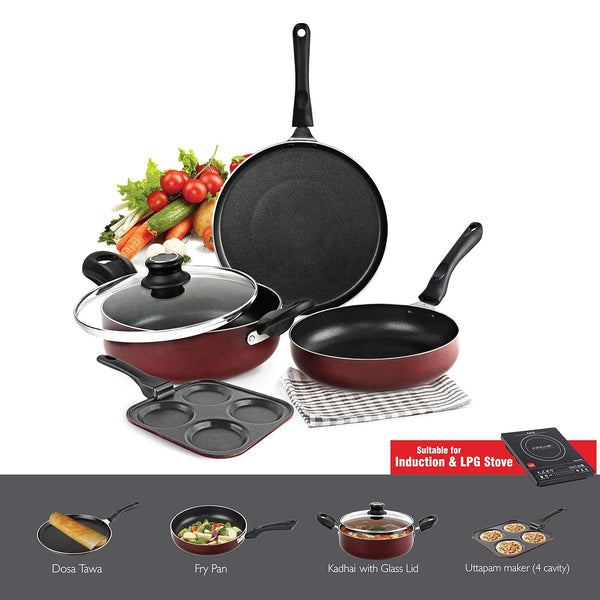 Prima Uttapam Non Stick Induction Base Cookware Set, 4 Pieces