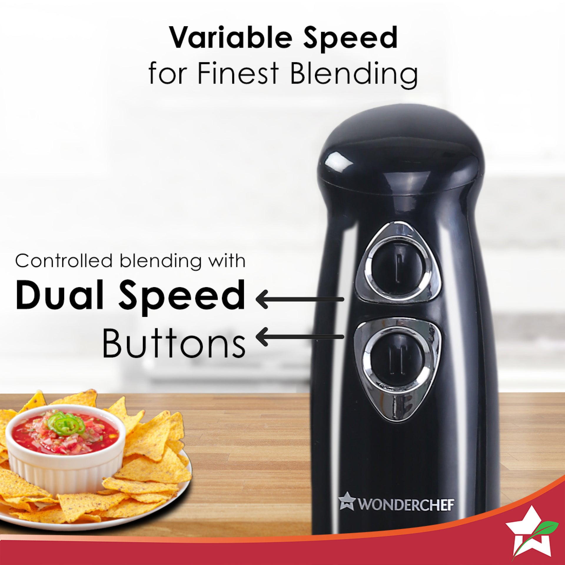 Prima Electric 180 W Hand Blender I Portable | Compact Easy Grip Body I Single Push Button Operation | Sharp Food Grade Anti Rust Stainless Steel Blades | Make Puree, Baby Food, Soup, Smoothie | Detachable Stainless Steel Shaft | 2 Years Warranty | Black