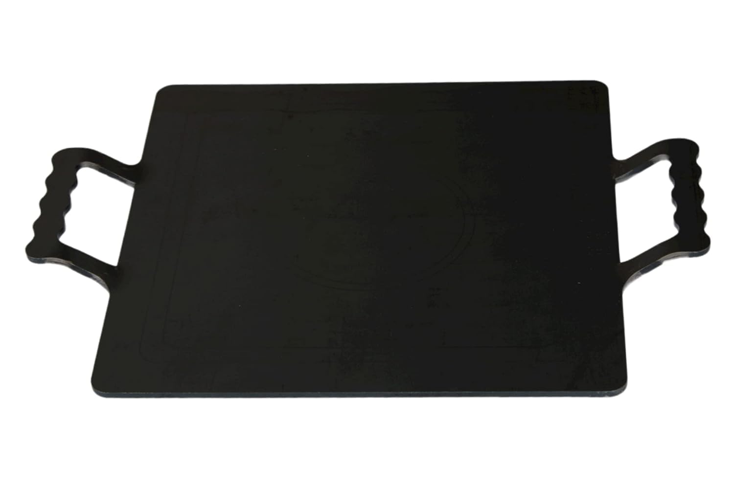 PRINA E-SHOP Pure Iron 4kg Flat Square Design Tawa with Laser Cutting Handle for Dosa/Roti/Chappati/Pathri/Gas & Induction-Friendly Dosa Kallu (Black_30cm x 30cm)