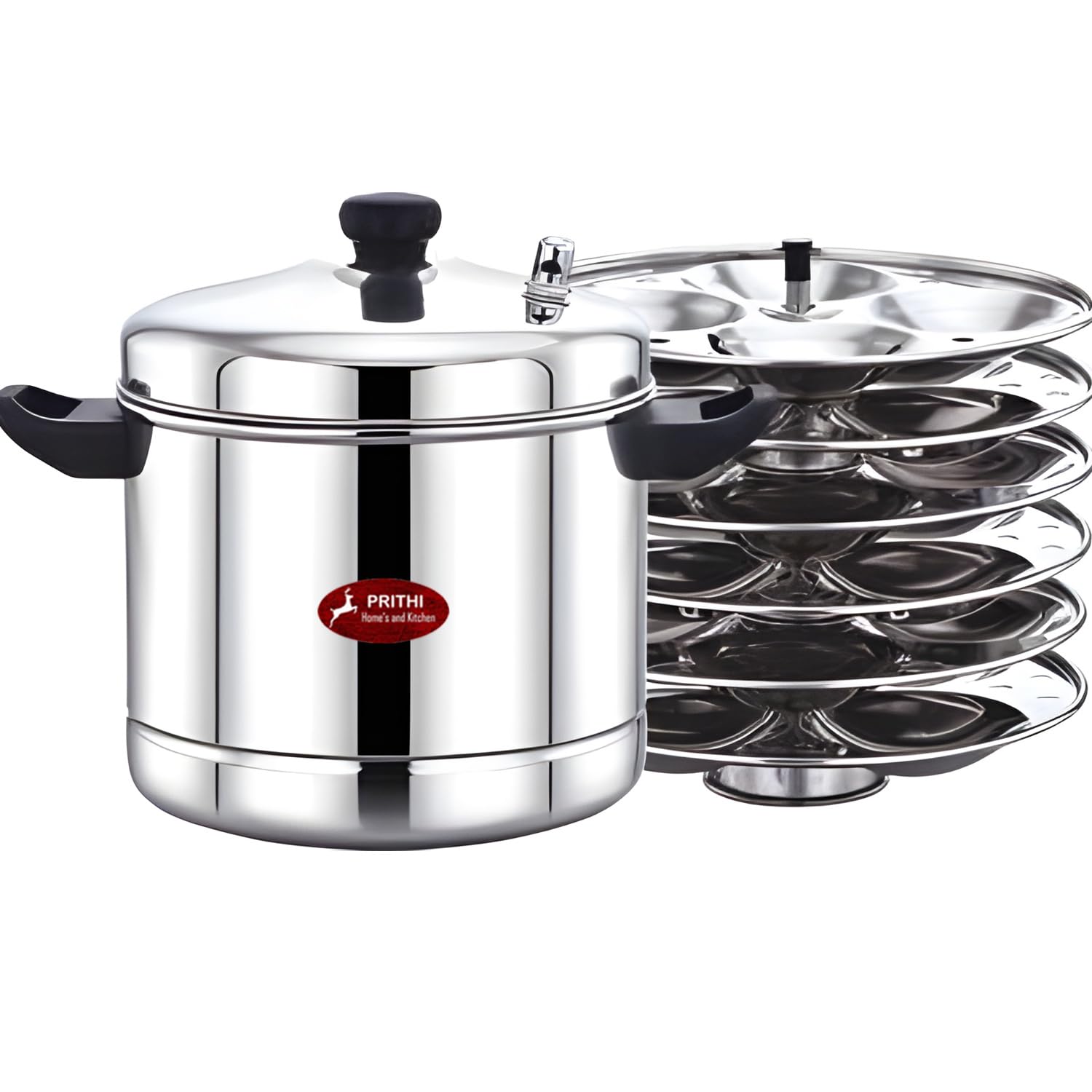 Prithi Home's and Kitchen 24 Cavity 6 Plate Idli Cooker, 24 Idli Maker Stainless Steel Idli Maker 24 Cavity Stainless Steel Idly Pot (6 Plate 24 Idli) - OCM Model