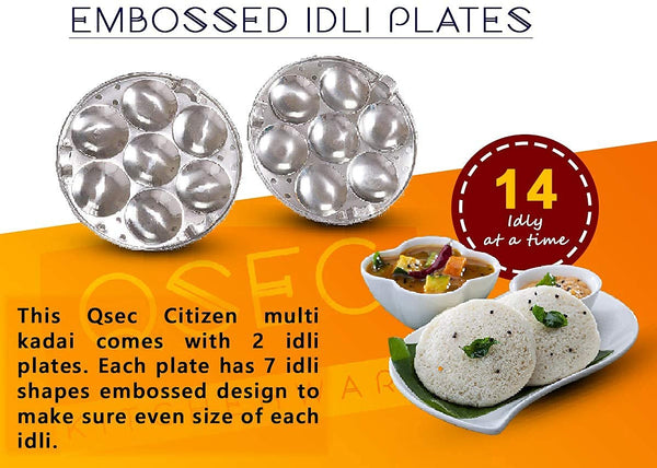 QSEC Stainless Steel Idly Cooker Multi Kadai Idli And Dhokla Steamer & Idli Cooker With 7 Plates|Mini Idli Stand|2 Mini Idli Plate|2 Idli|2 Dhokla|1 Momos|Multi Utility Kadai Cookware Set,5 Litre