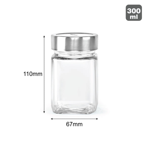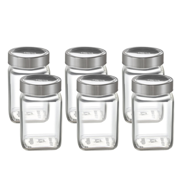 Qube Fresh Glass Storage Jar, 300ml, Set of 6