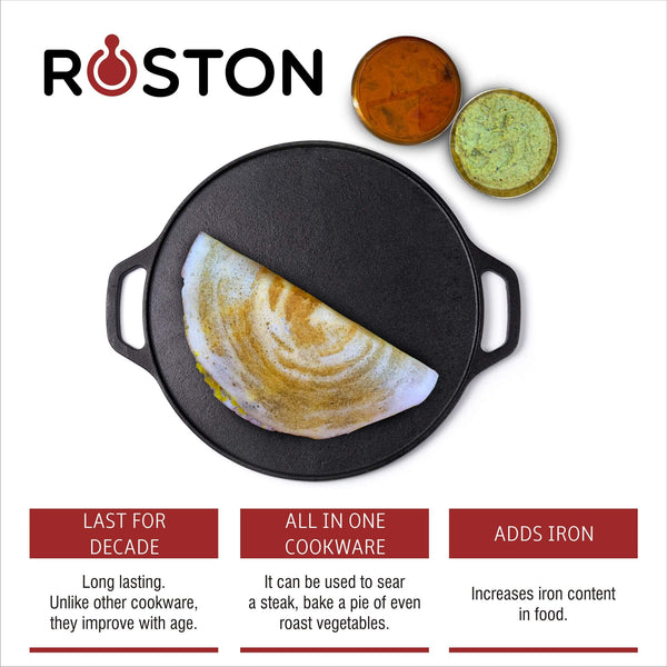 ROSTON Cast Iron Tawa Dosa | Cookware Flat Vessel Pre Seasoned | Ideal for Cooking Dosa Chapati Pizza Roti Thava(Thava Kallu Kitchen Accessories)