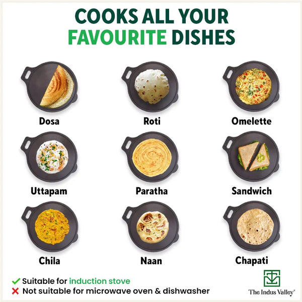 Super Smooth Cast Iron Tawa,Pre-seasoned, Nonstick, 100% Pure, Toxin-free, Induction, 28/30.5cm, 2.7/3.1kg