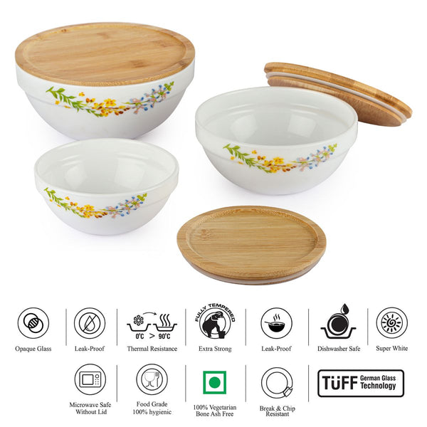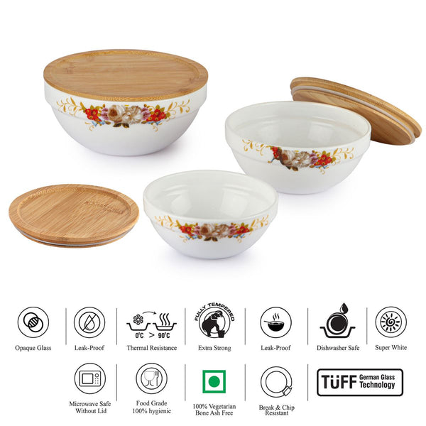 Royale Series Mixing bowls with bamboo lid Gift Set, 3 Pieces