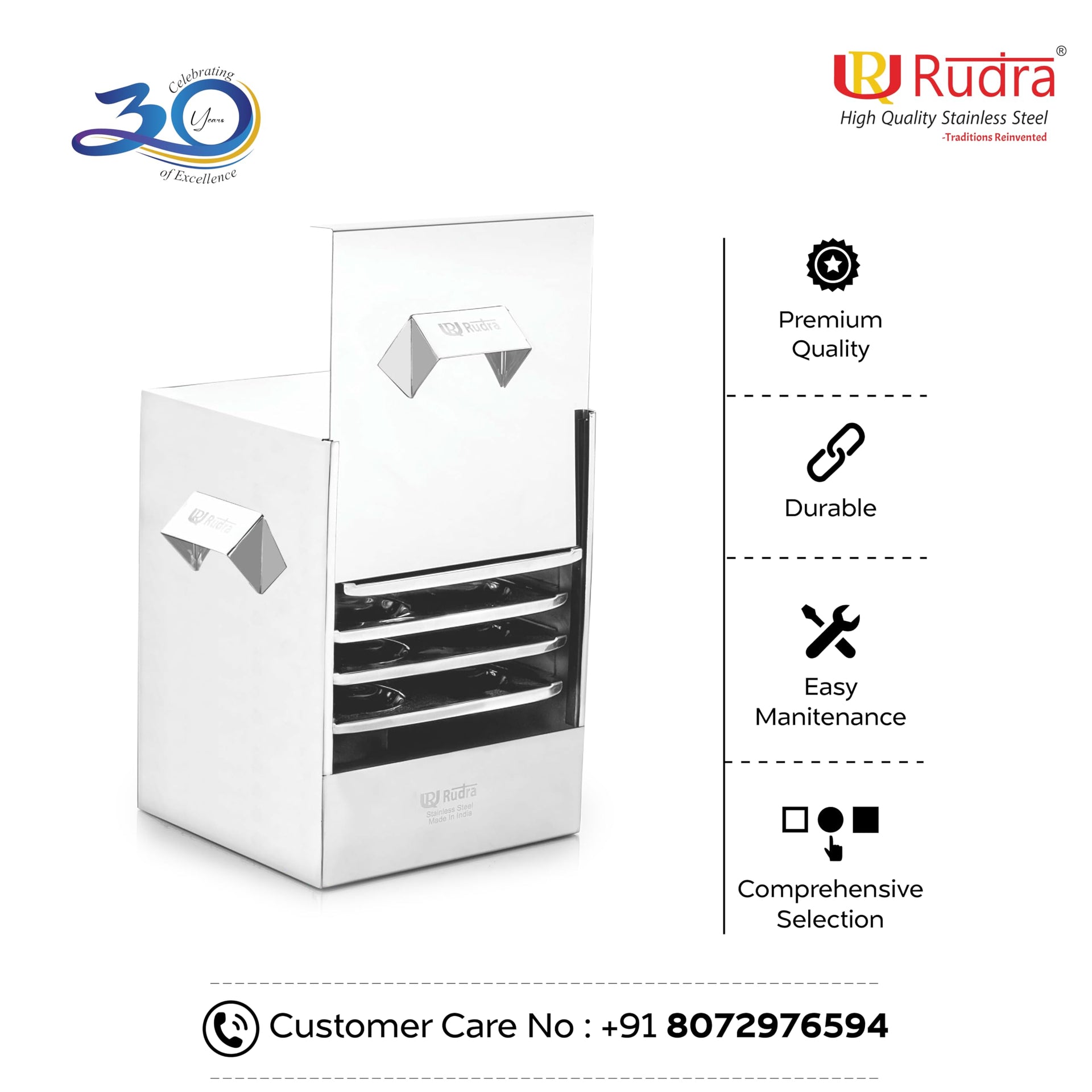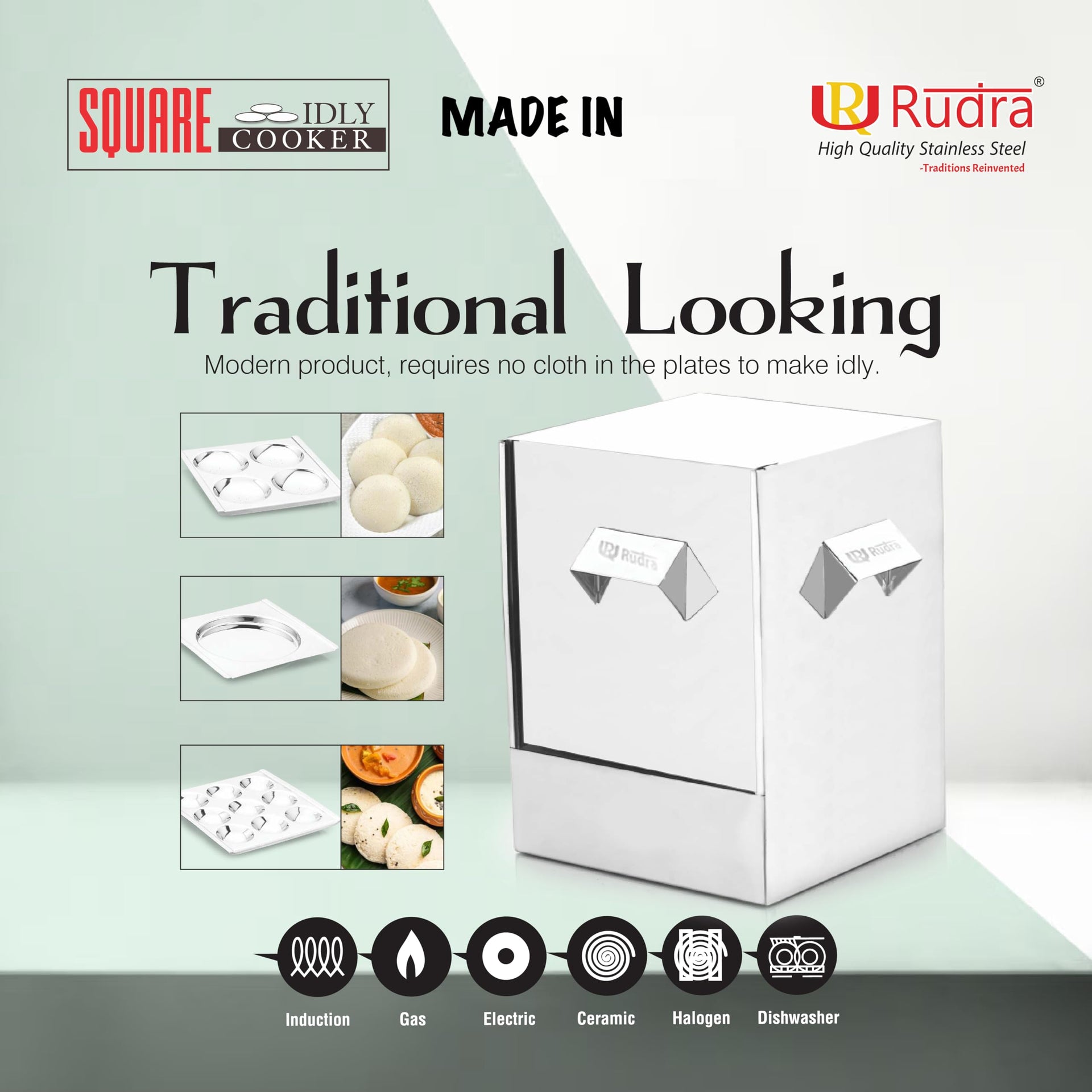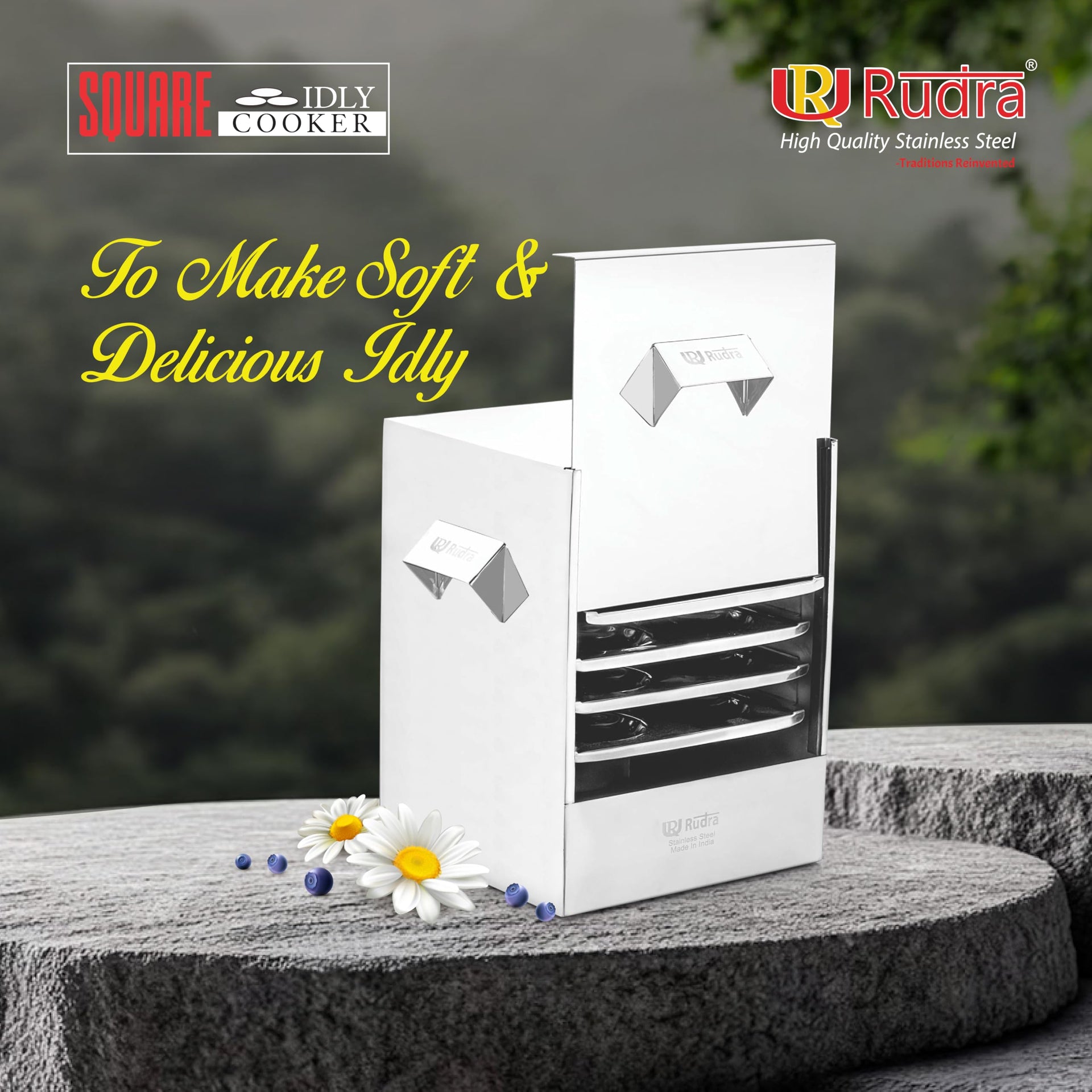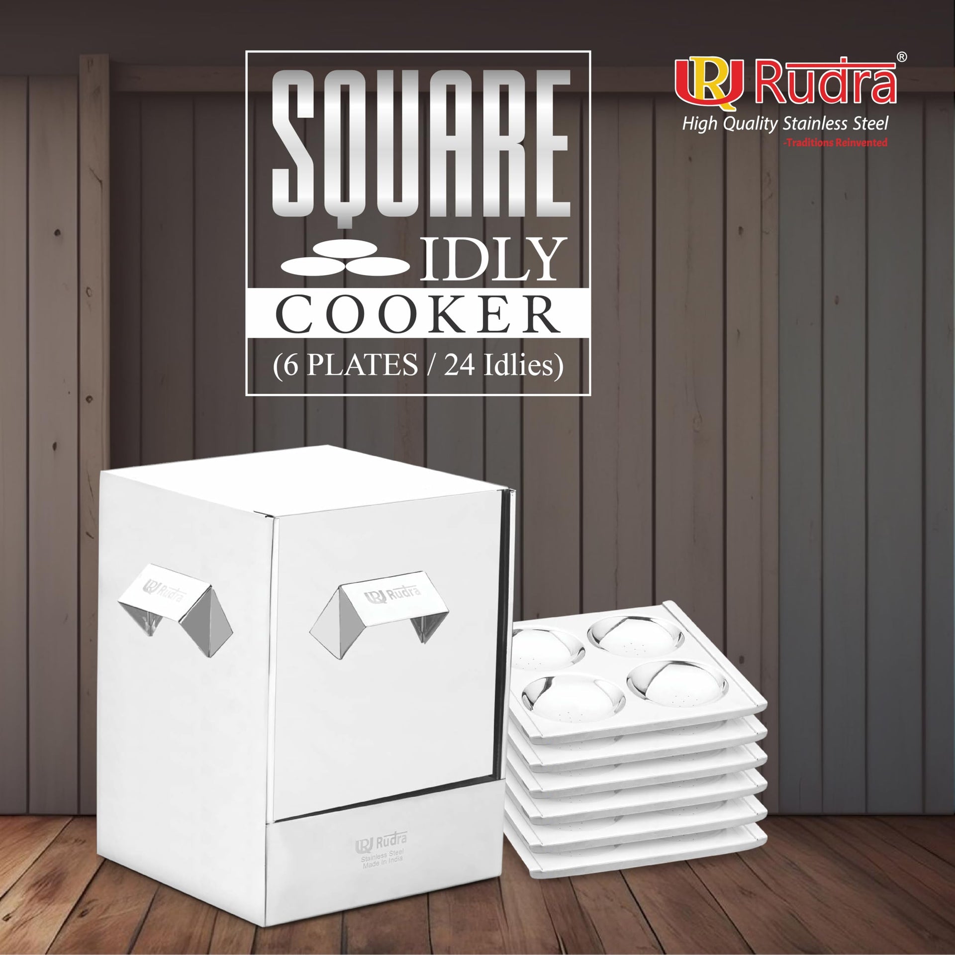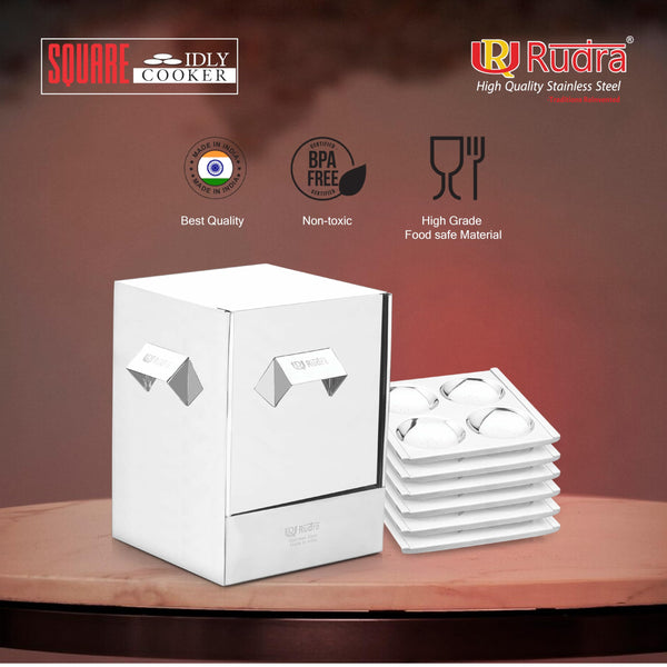Rudra Stainless Steel Square idly cooker/maker - 6 plates for HOME/Hotel USE, Idli Steamer Set, Gas stove and Induction Stove Compatible Cookware| Made in India