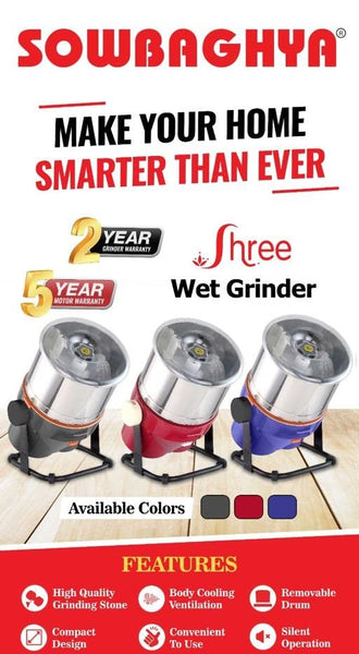 SOWBAGHYA Plastic Shree 2 Ltr Wet Grinder (Tilting Model) (With Attachments) Table Top Wet Grinder | Heavy Duty Motor | 2Ltr Wet Grinder For All Kinds Of Batter For South Indian Dishes (Grey)