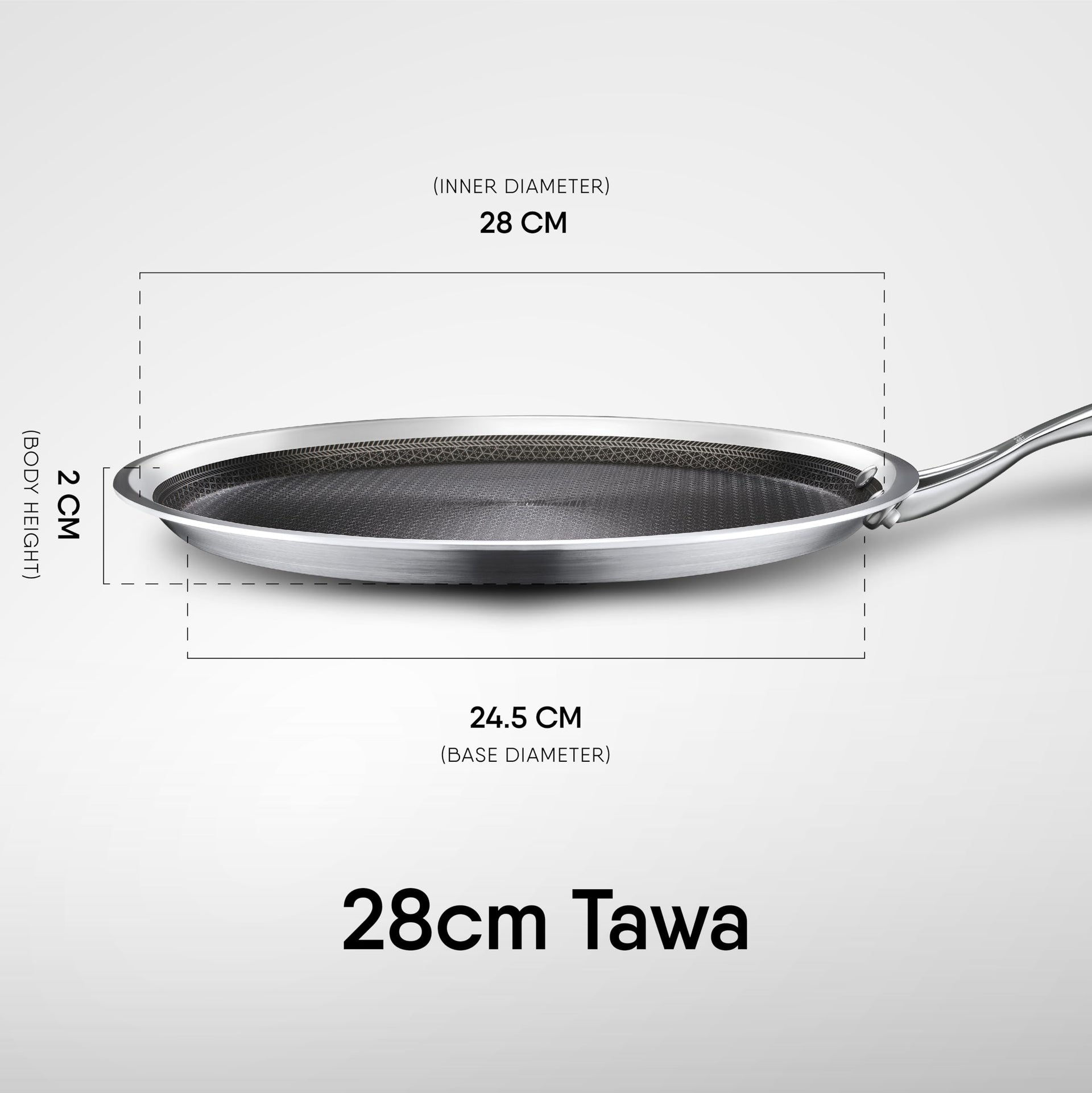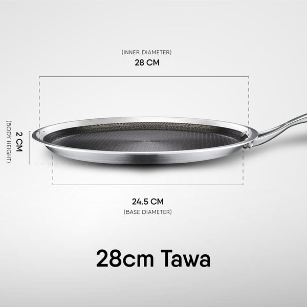 Stahl Artisan Hybrid Triply Dosa Tawa, Dosa Tawa with Induction Base, Non Stick Pan, Stainless Steel Scratch Resistant Dosa Tava, 28 cm