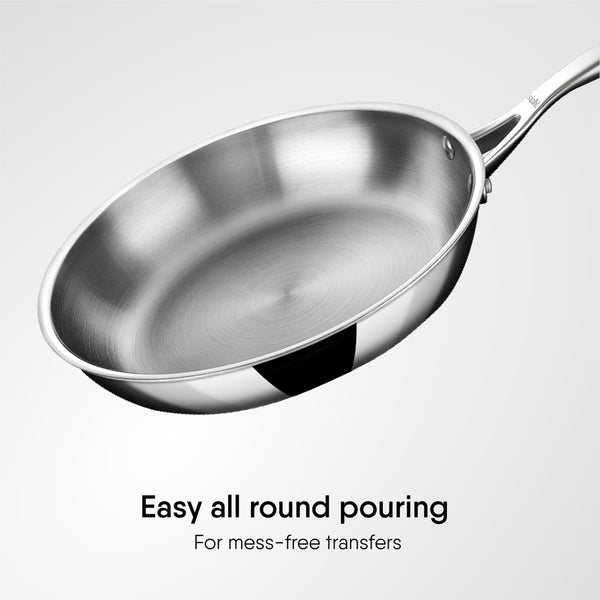Stahl Artisan Triply Stainless Steel Fry Pan with Lid, Induction & Gas Stove Compatible Frying Pan, Omelette Pan, Egg Pan, 1.6 L, 24 cm