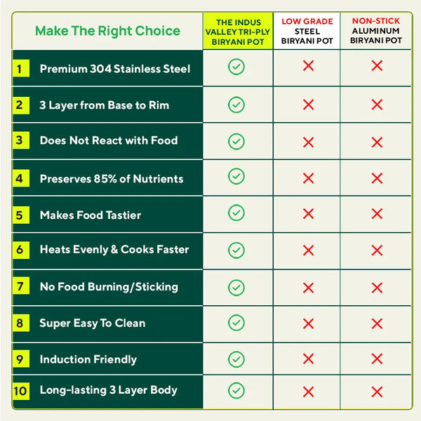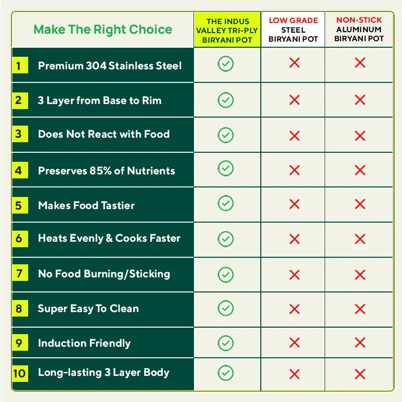 TurboCuk Tri-ply Stainless Steel Biryani Cooking Pot/Casserole, Premium Quality, 3 Layer Thick Body, Cool Silicone Handles, 100% Toxin-free, Non-stick, Induction & Gas, Free ₹110 Spatula, 2.9L