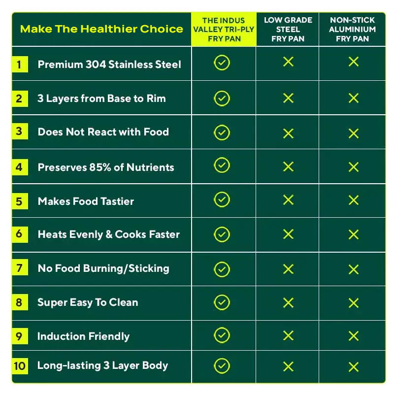 TurboCuk Tri-ply Stainless Steel Fry Pan, Premium 3 Layer Thick Body, Induction, Non-stick, 23.4/25.4/28 cm, 1.5/1.7/1.9L