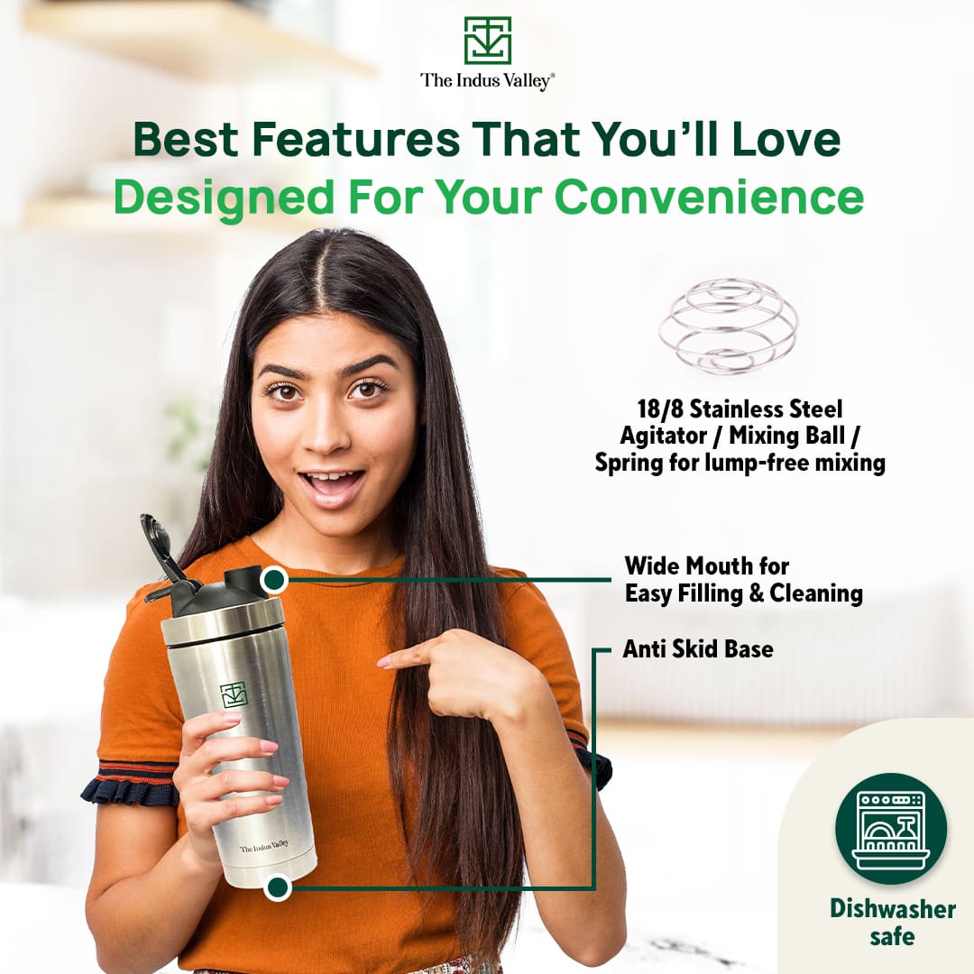 Vacuum Insulated Stainless Steel Gym Shaker Bottle with Steel Agitator for Pre/Post Workout, 750ml