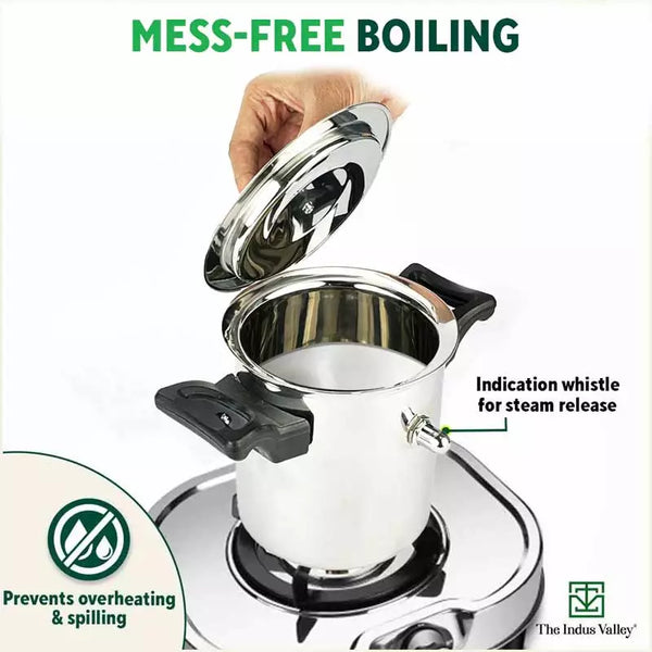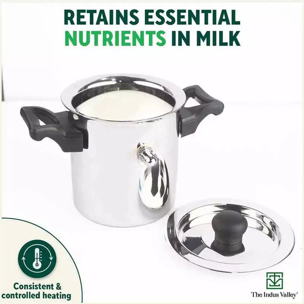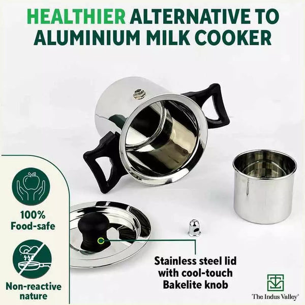 Stainless Steel Milk Cooker/ Boiler/ Pot with Handle+ Lid+ Knob+ Whistle, Premium Quality, 100% Toxin-free, Induction & Gas, 1 Litre