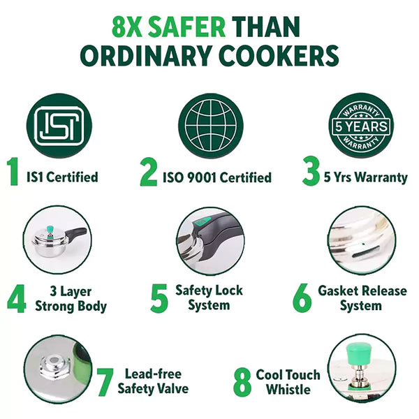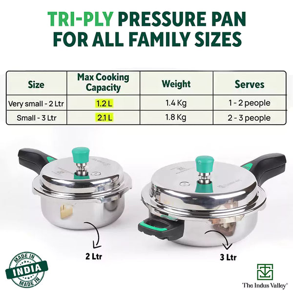 RapidCuk Tri-ply Stainless Steel 2-in-1 Pressure Cooker+ Frypan, Wide Shape, Premium Quality, 3 Layer Thick Body, Heavy Bottom, 100% Safe, ISI Certified, 5Yr Warranty, Induction & Gas, 2/3L