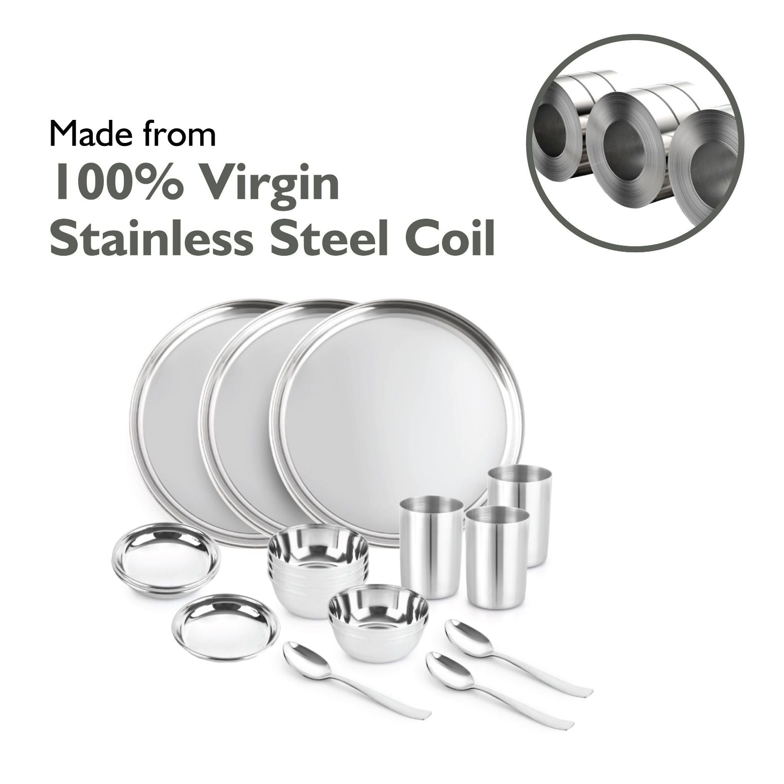 Steelox 18 Pieces Stainless Steel Dinner Set for Family of 3