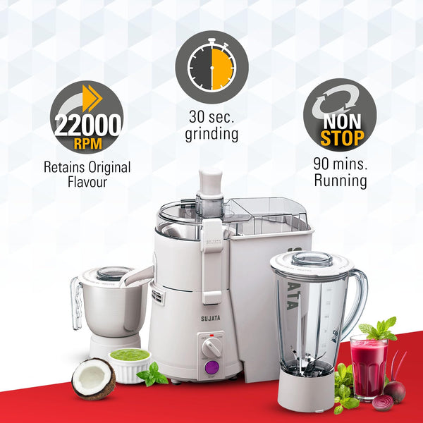 Sujata KI-28012 900-Watt Juicer Mixer Grinder with 2 Jars (White)